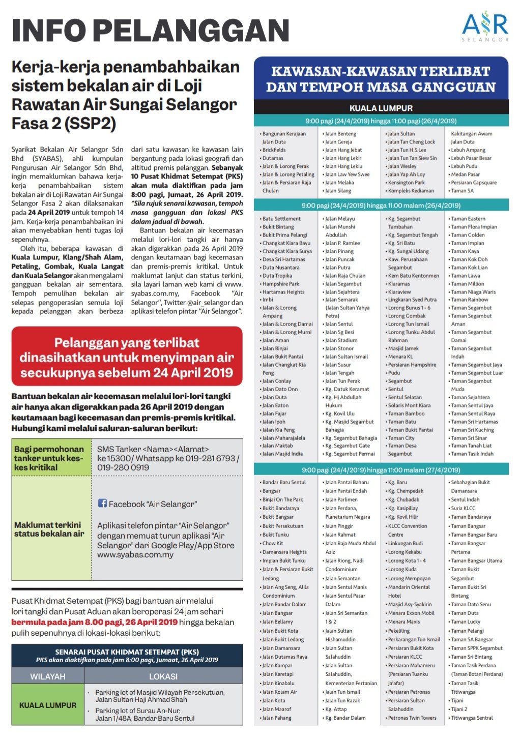 Hebahan Maklumat Gangguan Bekalan Air Berjadual Bagi Pelaksanaan Kerja Kerja Penambahbaikan Sistem Bekalan Air Loji Rawatan Air Sungai Selangor Fasa 2 Ssp2 Pada 24 April 2019 Portal Rasmi Majlis Perbandaran Klang Mpk
