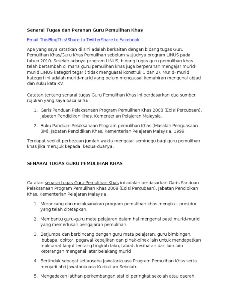 Email This Blogthis Share To Twitter Share To Facebook Senarai Tugas Dan Peranan Guru Pemulihan Khas