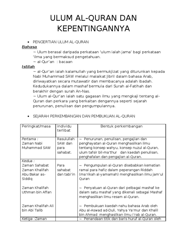 Pengajian Al Quran Dan Al Sunnah Ulum Al Quran Tingkatan 4