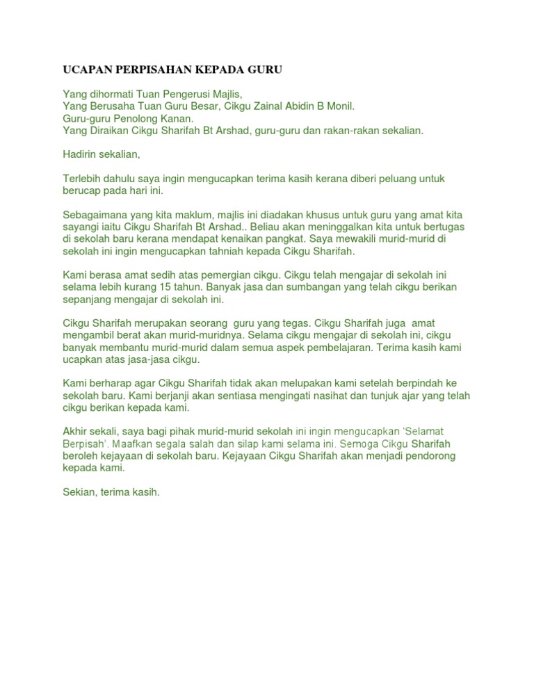 Ucapan Perpisahan Kepada Guru