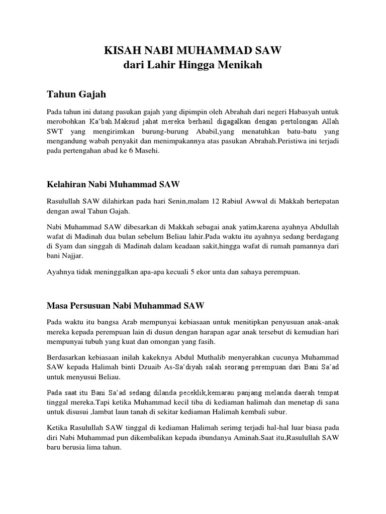 Kisah Nabi Muhammad Saw Dari Lahir Hingga Menikah Docx