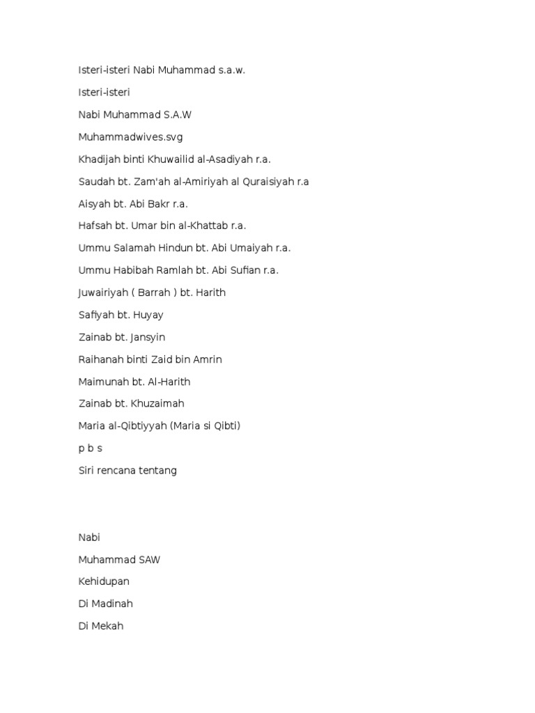 Isteri Isteri Nabi Muhammad Wikipedia Bahasa Melayu Ensiklopedia Bebas