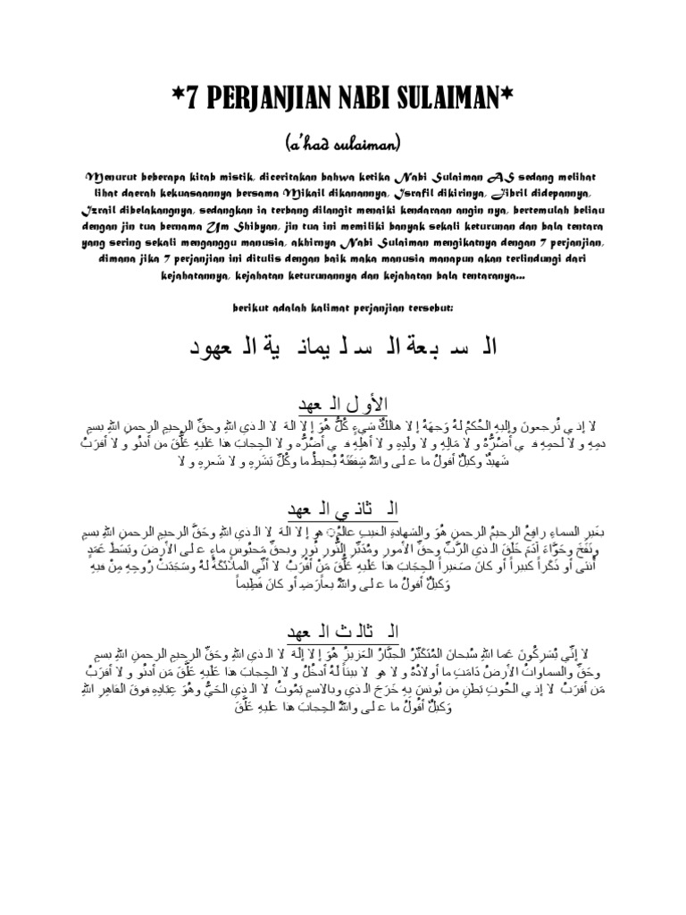 Surat Perjanjian Nabi Sulaiman Dan Jin