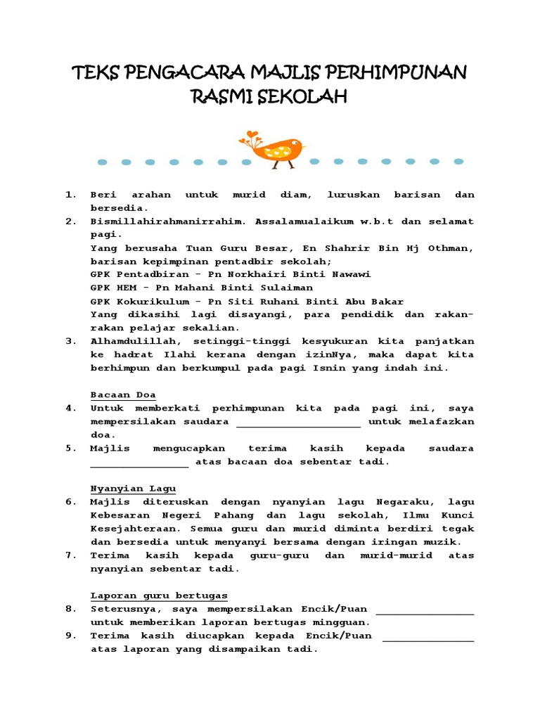 Tatacara Perhimpunan Pagi Sekolah Docx Document